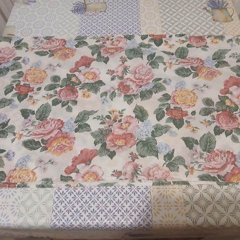 Kukkakuvioinen verhokappa. Hinta 10e. Tankokuja on.