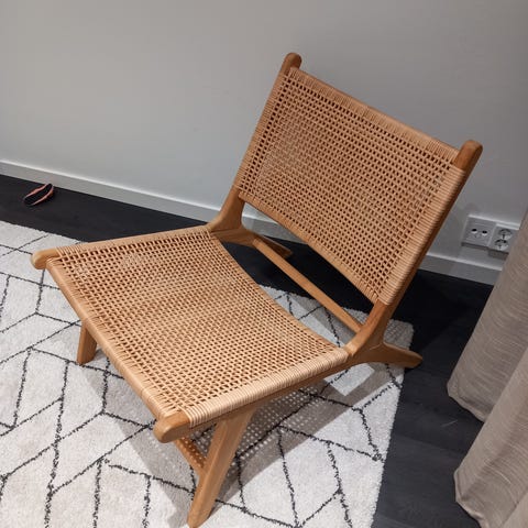 Kuvanmukainen verhoilijan verhoama legendaarinen k-tuoli. Ei sopinutkaan omaan käyttötarkoitukseen ja siksi pistän myyntiin.