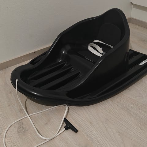 Leveä ja vakaa vauvojen ja taaperoiden pulkka. Mukana kiinnitysremmi ja pulkassa istuinpehmusteet. Vain nouto.