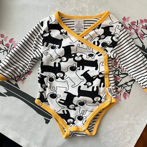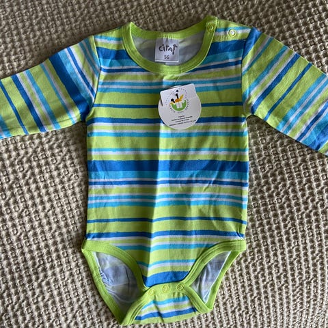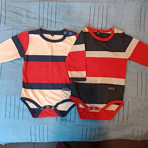 Myydään raidallinen Ristomatti Ratian body koko 56. Olkapäällä nepparit.