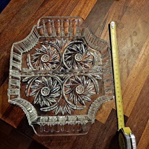 Kuvan mukainen hopeakehyksinen kristalliastia kahvalla. Nouto Kellokoskelta.