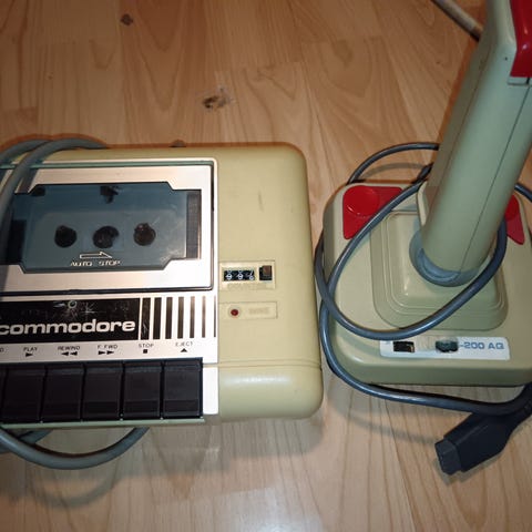 Commodore 64, kasettiasema, pelejä.