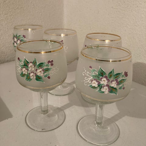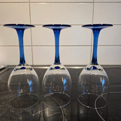 6 kpl hiottuja laseja, korkeus 10cm, vetoisuus 0,5dl.