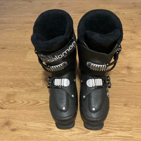Salomon laskettelumonot mustat. Monot on varustettu neljällä kiristysklipsillä ja säädettävällä remmillä. Soveltuvat lasketteluun ja tarjoavat tukea ja vakautta jalalle. Paljon käytetyt mutta ajaa vielä asiansa. Muistakseni nämä ovat kooltaan 26.5 (27)