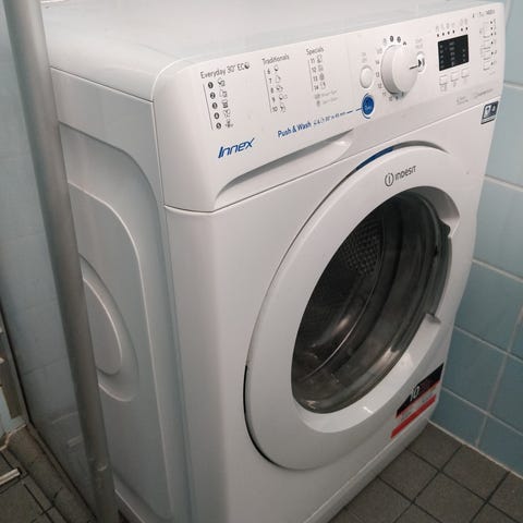 Myyn 10 kg:n pesukoneen, jossa on iso rumpu. Rumpu pitää jonkin verran ääntä pyöriessään, mutta vaatteiden pesussa ei ole toistaiseksi ongelmia. Saattaa vaatia korjausta, jos se hajoaa. Koneessa on myös kuivaustoiminto, mutta se antaa virhekoodin F15, joka käyttöohjeen mukaan tarkoittaa, että lämpölamppu on vaihdettava.