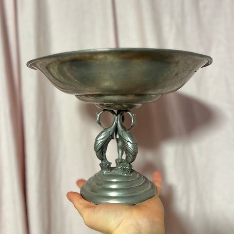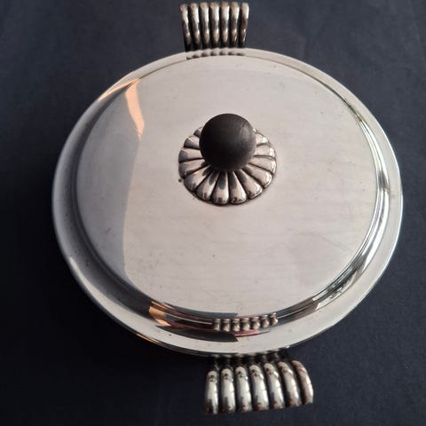 Kaunis art deco -tyylin pronssinen kulho 1930-luvun alusta. Valmistajana tanskalainen Aegte Ildfast. Kulhon keskellä on pronssista valettu naishahmo. Kulhossa on patinoitunutta käytön jälkeä ja reunassa pieni kolhu. Hieno, lähes 100-vuotias alkuperäinen esine vaikka koruastiaksi.