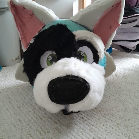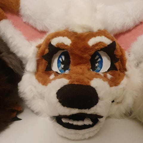 Todella hyvä laatuinen fursuit pää etsii kotia. Mukana pää ja irtokieli.