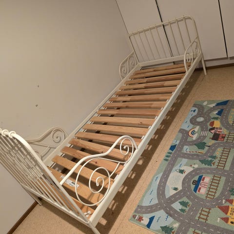 Jatkettava sänky. Jaa jatkettua 130-160-200cm suurinpiirtein.
