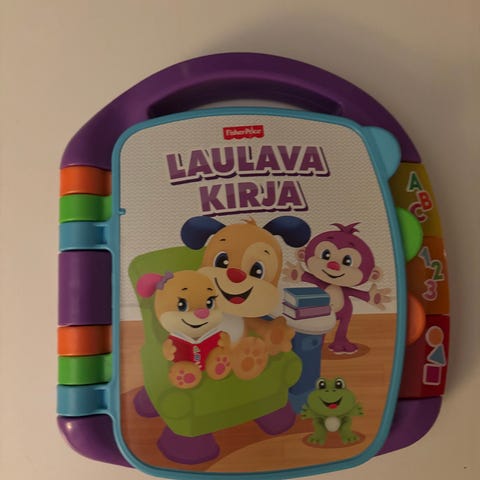 Laulava kirja, äänikirja, laulava nalle sekä soiva pinoamistorni lelu. Ei sisällä pattereita, testattu kaikki toimivia.