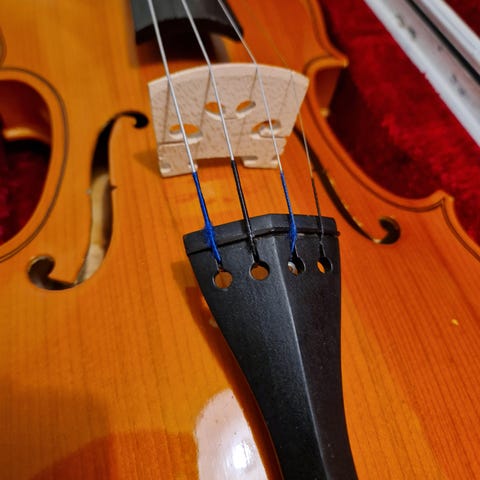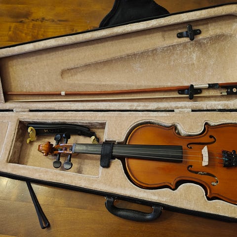 Kotona on 2000e viulu. Olet tervetullut kokeilemaan jousta viulun kanssa.