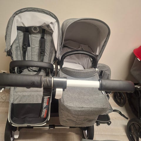 Vaunut ostettu 06/22 ja otettu käyttöön 08/22. Ollut käytössä yhdellä lapsella. Tuplina nyt muutaman kerran. Vaunut eivät ole olleet mitenkään älyttömän kovalla käytöllä, mutta toki kulumaa ja naarmuja löytyy. Kaikki mekanismit toimivat kuten pitääkin. Runkoon on liimattu mustat heijastinteipit. Kaikki lisävarusteet Bugaboon omia.
