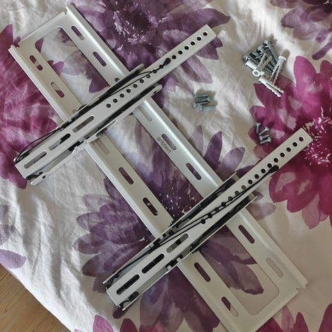 Universal large TV wall mount with rail system by Multibrackets. Suitable for TVs 55–75 inches, supporting up to 80 kg. Screws are missing.