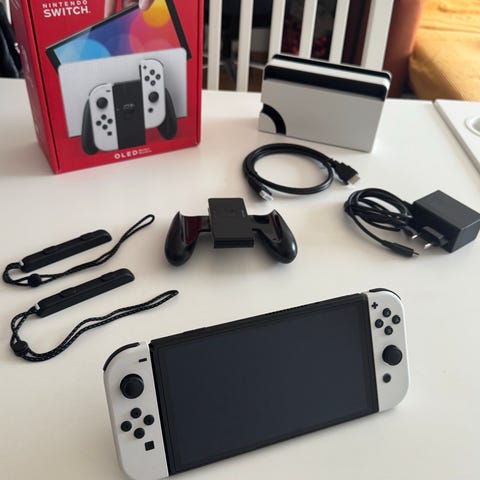 Switch oled 2023. Vaihdettu vähänkäytetyt joyconit tähän ja näyttö kuin uusi. Poistin juuri suojakalvon koska näytti huonolta kuvissa. Täysin uudenveroinen laite. Kaikki osat tallessa. Pikachu Travel case mukana.