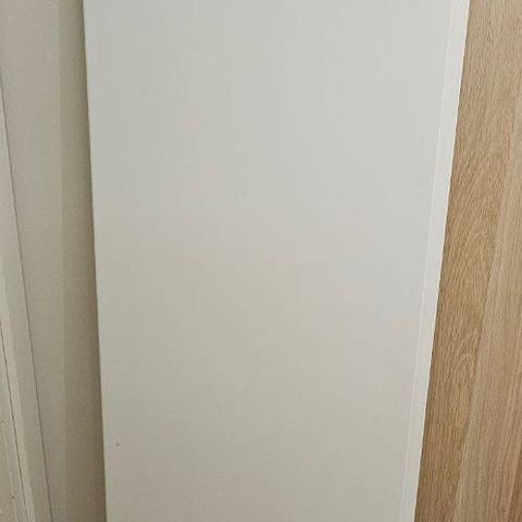 Ikea PAX vaatekaapin runko koossa 75x58x201. Mukaan saa lisäksi 3 kpl KOMPLEMENT hyllylevyjä sekä vaatetangon. Myynnissä myös erikseen kuvassa näkyvä VIKANES ovi. Toisessa kuvassa näkyy kaapin sivuun tehty reikä sekä jalkalistan kohdalta otettu pieni pala pois. Kokonaisuuden ovh. Ikeassa 135 euroa.