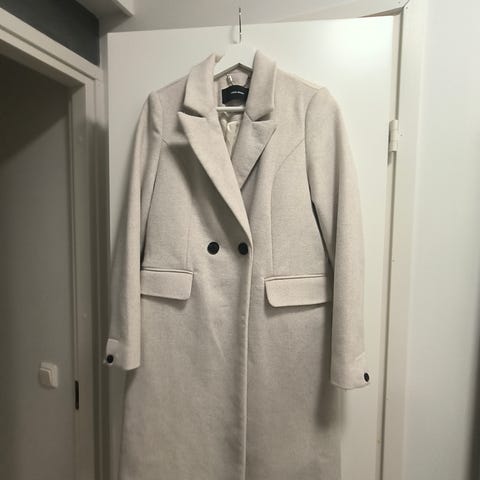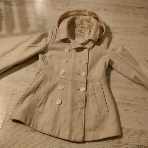 myydään hyvässä kunnossa oleva beigen värinen villakangastakki, koossa xs. hinta 20€.