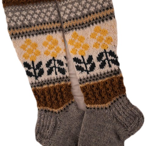 7-veljestä- langasta neulotut sukat 16 cm:n varrella. Ei eläintalous.