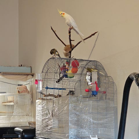 Linnut etsivät uutta kotia. Uros keltainen väritys ja naaras valkoinen ovat arviolta 2-vuotiaita. Linnut munivat. Linnut ovat terveitä ja hyvässä kunnossa. Asuvat Oulussa. Myyn elämän tilanteen muutoksen vuoksi. Yhteensä 500€ häkin kanssa. Tervetuloa tutustumaan!😊