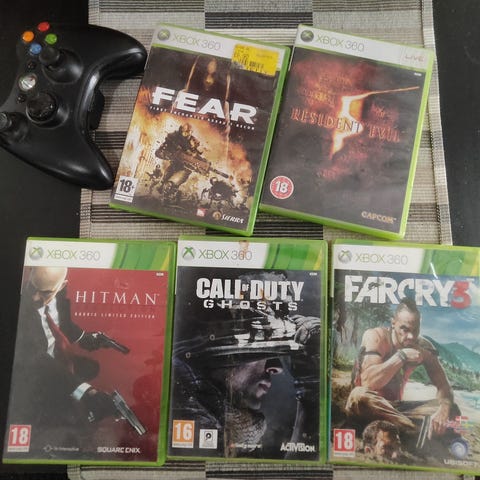 Langaton Xbox 360 ohjain patterikotelolla + pelejä