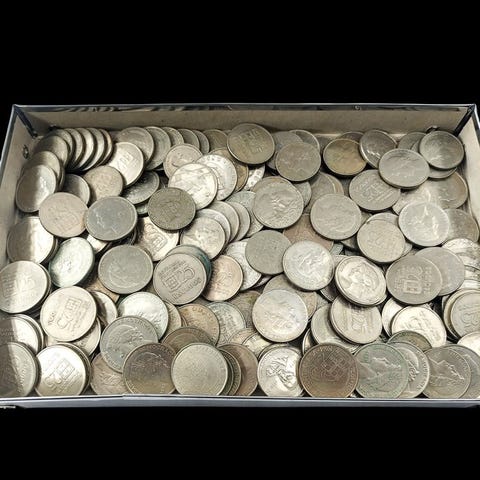 Portugal. 5 rullaa kolikoita 25 Escudoa (1), 10 Escudoa (1), 2,50 Escudoa (3) Useita päivämääriä