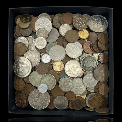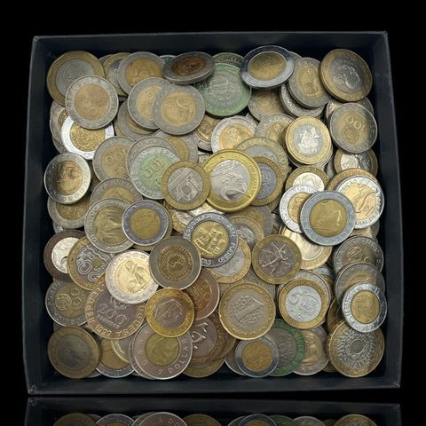 Italia. 145 Italian kolikon erä, useita metalleja, eri vuosiluvuilla. Eri vuosiluvuilla (ei minimiarvoa)