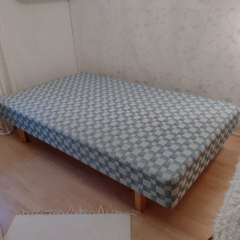 Hakemisen vaivalla Kaukovainiolta 120cm runkopatjasänky. Käytön jälkiä on jonkun verran, mutta oikein hyvä sänky ollut käytössä ollessa. Muuton vuoksi mieluiten mahdollisimman piakkoin haku. Sänky pitää kuljettaa portaita pitkin kolmannesta kerroksesta.