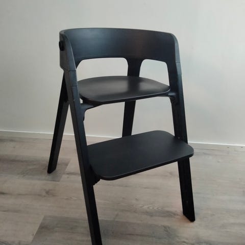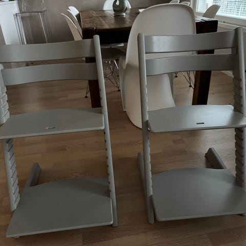 2kpl Charlie Crane merkkisiä lasten tuoleja. Näistä saa lisäosalla syöttötuolin. Toisessa tuolissa istuimessa pieni jälki. Muuten hyvässä kunnossa molemmat tuolit.