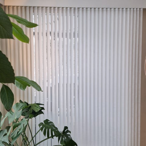 Uudet käyttämättömät lamelli verhot. Kisko, lamellit, painot ja kannakkkeet.