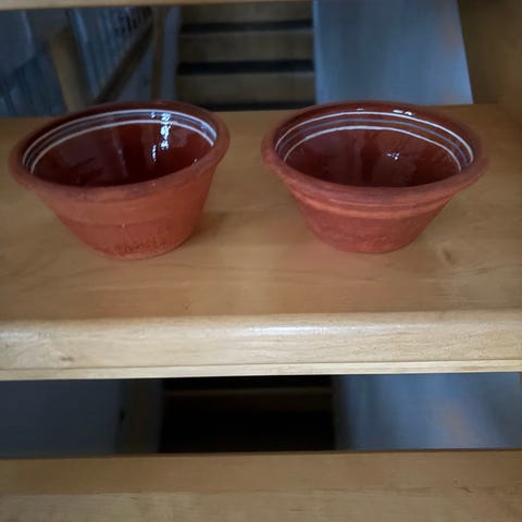 Hyväkuntoiset kulhot. Vetoisuus reilu 3 dl. Kork 3 cm. Suun halkaisija 13 cm.