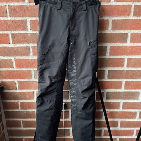 Hameen takaosan halkion alueen aluskangas on halkaistu itse saksilla, jotta hame istuu paremmin hevosen selässä ollessa. Jalkalenkit ok ja vetoketjut toimii hyvin. Koiratalous.