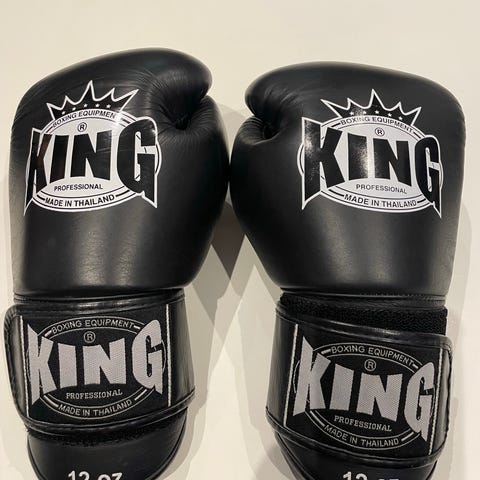 Myydään kamppailuvarusteiden setistä hanskat ja säärisuojat.