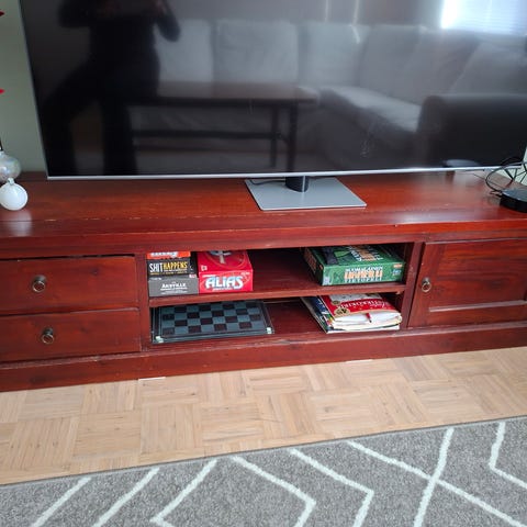 Hyväkuntoinen ja kestävä puinen taso/penkki tms.