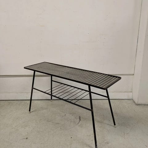 Vanha sivupöytä, taso tiikkiä (teak). Taso juuri öljytty. Todella kevyt, pöytä erinomaisessa kunnossa.