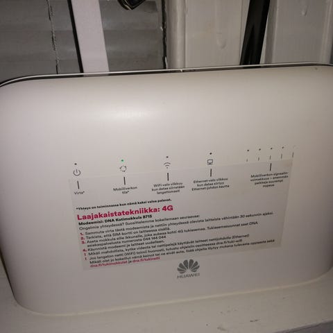 Huawei Premium 4G+ WLAN B715 modeemi. Laite tukee 4G+ verkkoyhteyttä ja WLAN-toimintoa. Mukana virtalähde ja ulkoiset antennit. Soveltuu kotiin, sekä mökille.