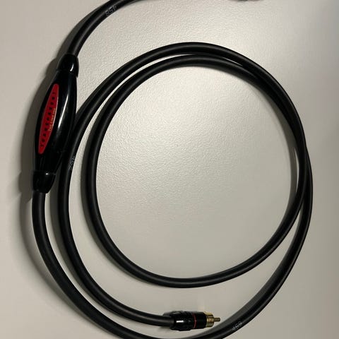 Yksittäinen hyväkuntoinen ja laadukas kaapeli esim. subwooferin kytkemiseen.