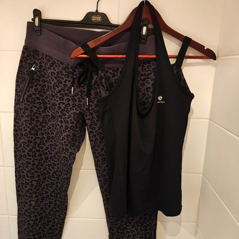 Treenivaatesetti koko S/M, pientä käytön jälkeä ja College koossa M, tosi hyvä kunto.