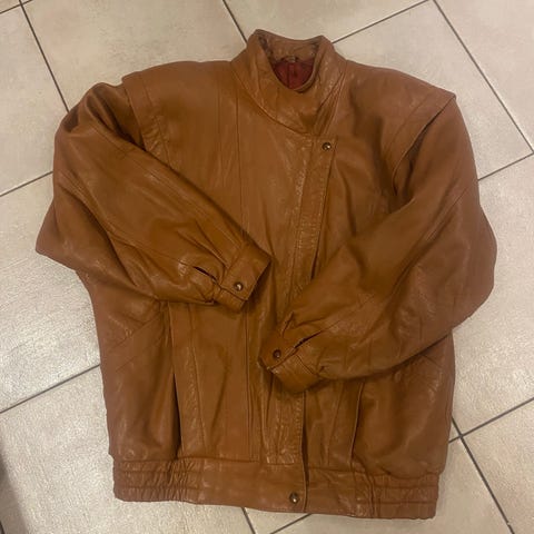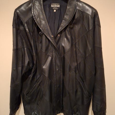 Upea musta nahkatakki, vintage kasari 1980s ja se näkyy. Topattu, eli kuin talvitakki - tarkenee pakkasella.