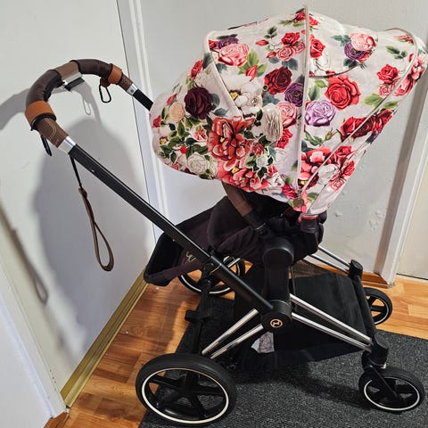 Mukaan tulee sadesuoja ja lämpöpussi. Cybex priam soveltuu myös turvakaukalon käyttöön adaptereilla