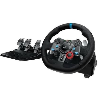 Logitech G29 ohjauspyörä ja polkimet pelikäyttöön. Musta väri, sisältää ohjauspyörän ja kaksi poljinta.