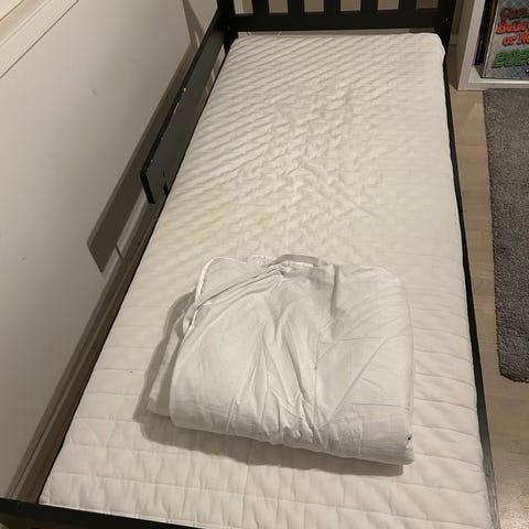Kuvan lastensänky ilman patjaa. 70cm leveä 160cm pitkä Runko ehjä, sängyn laitatuessa isoimmat kulumat. Sänky valmiiksi purettuna.