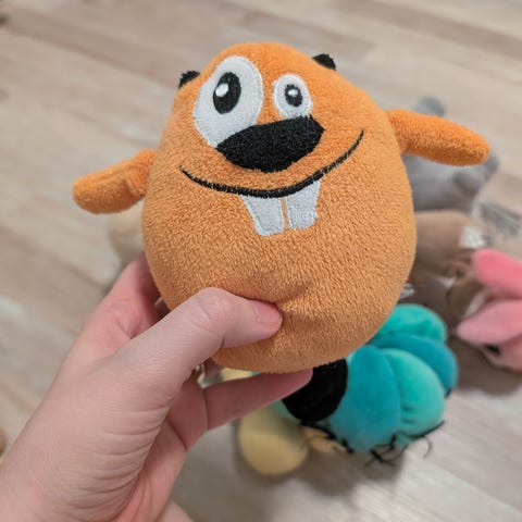 Fantorangen pehmolelu, violetti, pehmeä materiaali, lasten lelu.