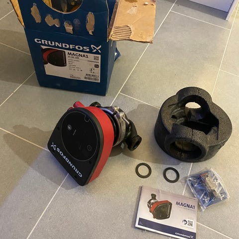 Pumppu purettu toimivana lämmitysjärjestelmästä. Ulkoisesti ottanut osumaa, mutta säilytetty kuivassa ja lämpimässä tilassa.