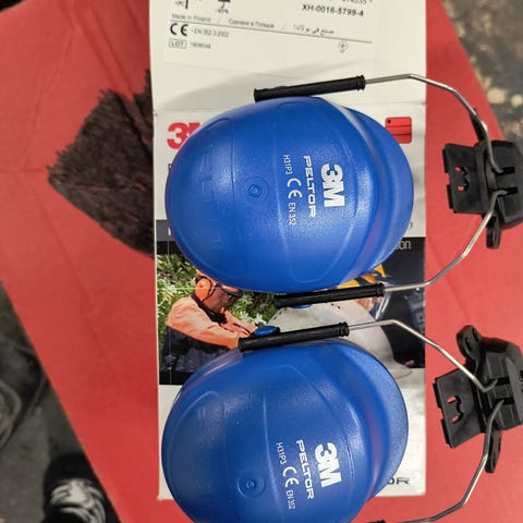 Todella vähän käytetty kypärä kuulosuojaimilla. Koko 54-62cm