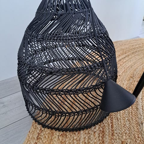 Rottinkinen lampunvarjostin. Uutta vastaavassa kunnossa, ollut sisäkäytössä olohuoneessa. Halkaisija 50cm, korkeus 34cm. (Ovh. 273€) Suuren koon vuoksi vain nouto.