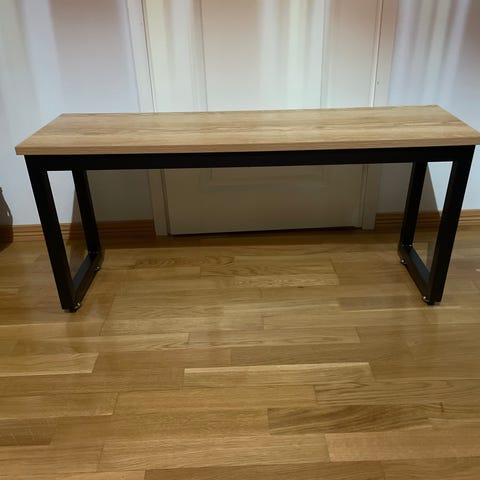Myydään tarpeettomana kangaspäällysteinen penkki, musta metallirunko. Leveys 90cm, syvyys 35cm ja istuinkorkeus 40cm.