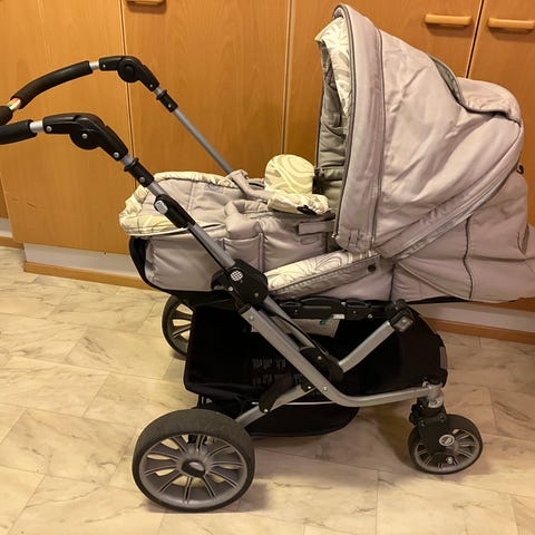 Vaunujen alakopassa pieni sormin mentävä rako joka näkyy kahdessa viimeisessä kuvassa. Sen saa helposti korjattua. (Itseä ei ole haitannut kun niin pien, ettei muutenkaan alhaalla säilytä niin pientä tavaraa joka pääsisi tippumaan reiän kautta. )Istuinosan suoja kaareen on myös verhoiltu nahka uudelleen. Paljon nähnet vaunut, mutta toimivat hyvin varavaunuina.