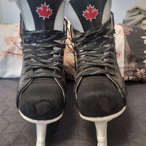 Siistissä kunnossa olevat luistimet. Terät tuntuu käteen teräviltä, joten ei tarvinne teroittaa.