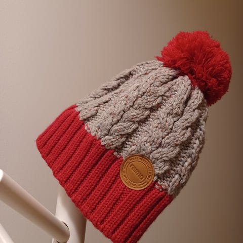 Lämmin Reima pipo, koko 48. Hyväkuntoinen muuten, mutta pieni purkauma edessä. Bogi hyväkuntoiset vanttuut, koko 4-6v.
