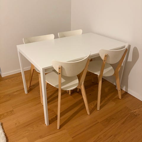 Hyväkuntoinen ruokailuryhmä. Pieniä käytönjälkiä löytyy.