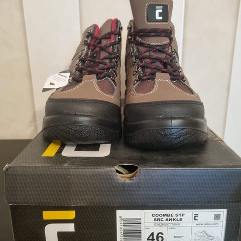 Cerva merkkiset turvakengät, ruskeat, koossa 46. Tarvitsevat putsausta