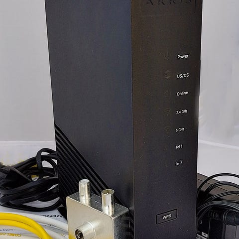 Myydään tarpeettomana toimiva Arris 2492S kaapelimodeemi, Laite sisältää useita Ethernet-portteja ja mahdollistaa internet-yhteyden jakamisen kotiverkossa tai pienessä toimistossa. Virtalähde tulee mukaan vaikkei kuvissa näy.